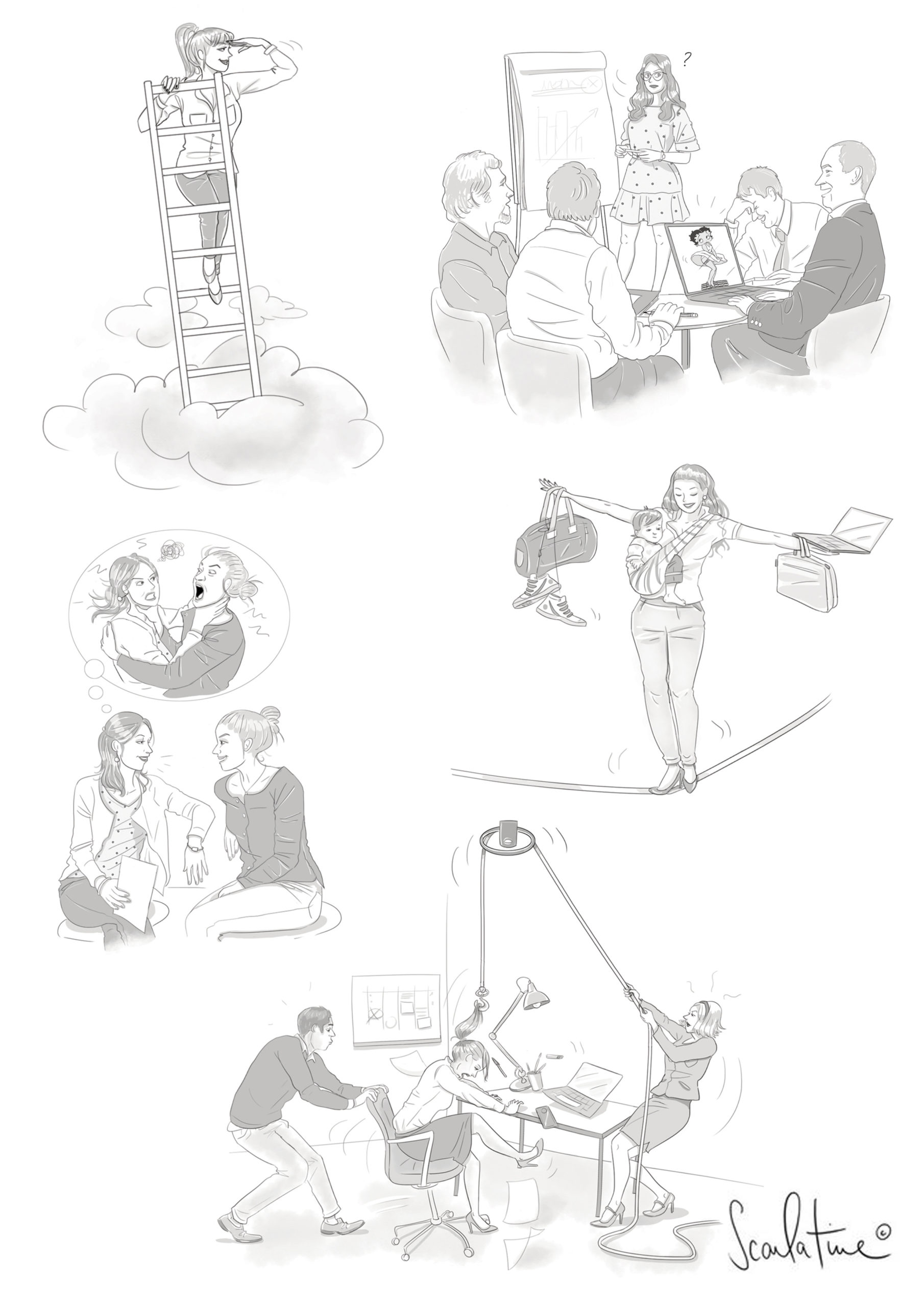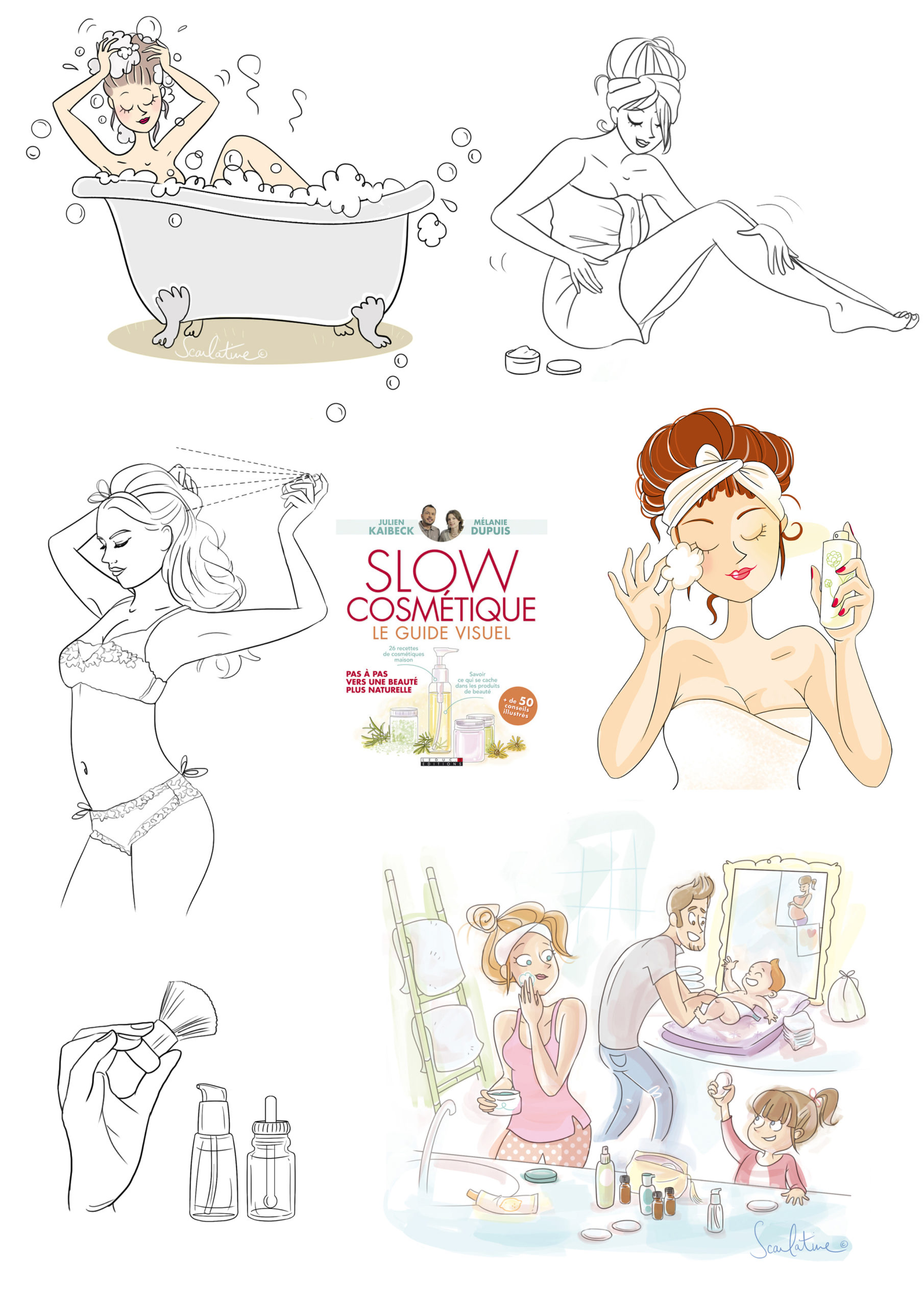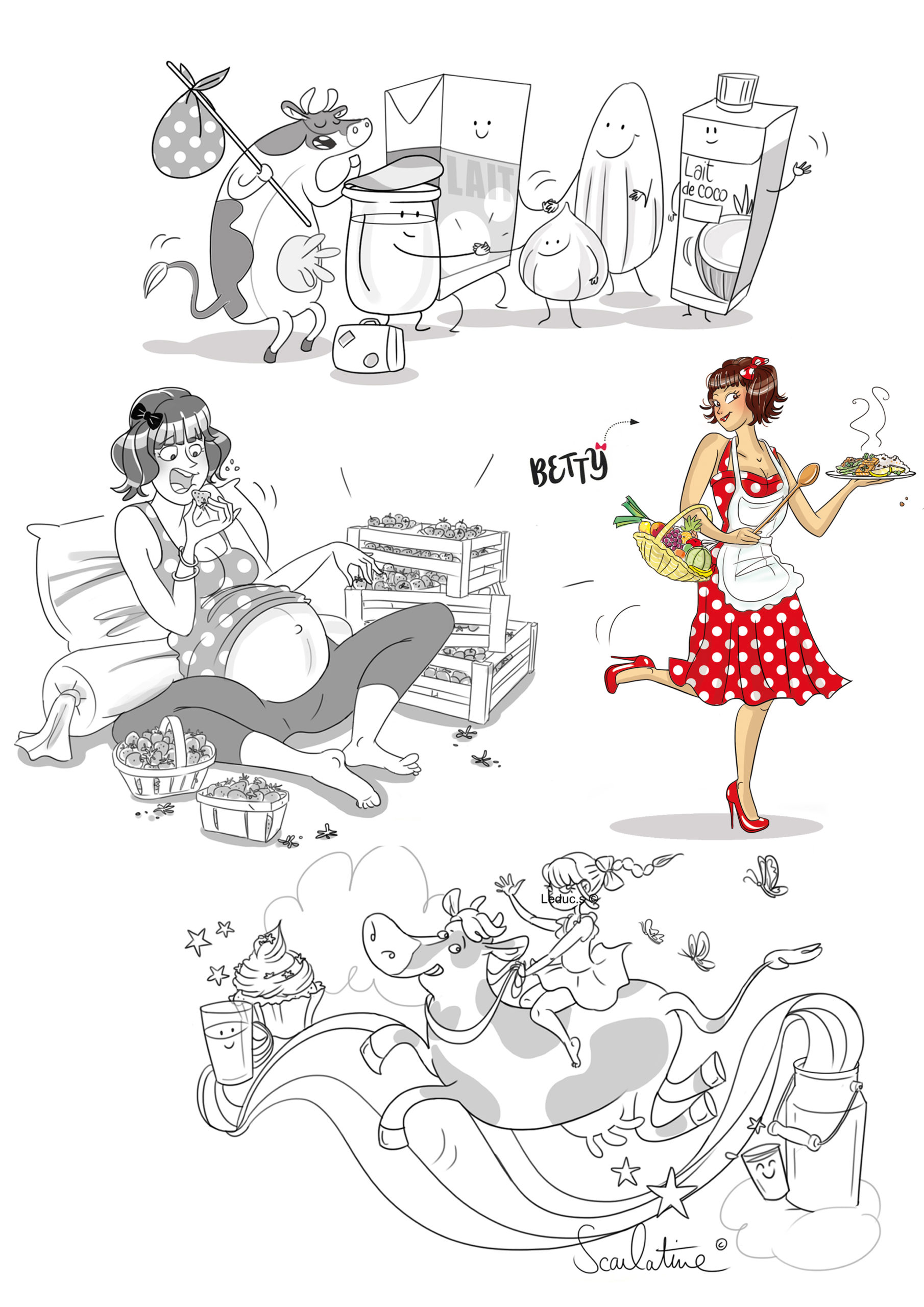 En parallèle en 2001, elle décroche le Capes et devient professeur d’arts Plastiques. Elle dessine essentiellement pour la presse scolaire et féminine : Hachette, Witch, Disney, Unicef, La Parisienne, Vital et collabore avec des groupes d’édition comme Casterman, Prisma, Leducs, Dunod, Delcourt, Marabout. Dans le magazine Vital elle crée de A à Z, scénarios et planches des aventures d’Agathe, une sportive allergique à l’effort. Des sujets variés comme le sport, la santé, le couple, les ados et la gastronomie sont ses thèmes favoris. Ses pensées et coups de gueules illustrés sont visibles sur les réseaux sociaux qu’elle croque avec un style tantôt BD, tantôt réaliste.